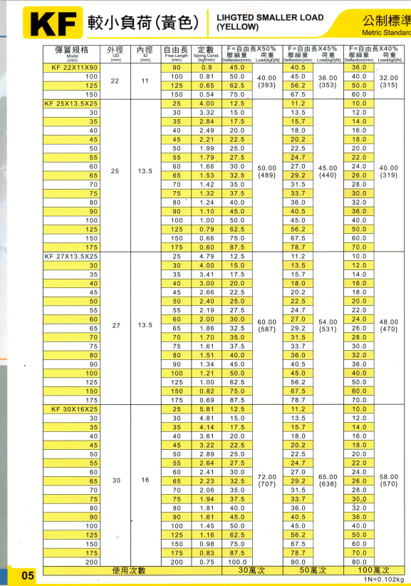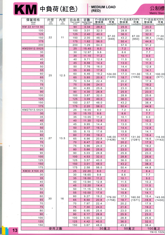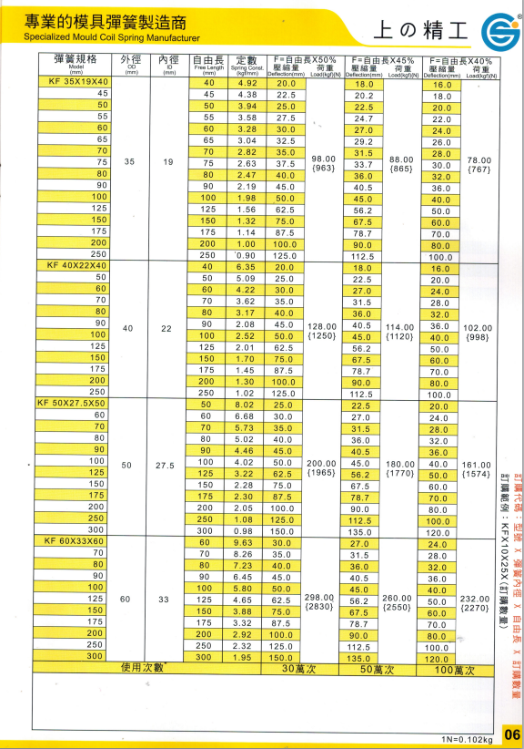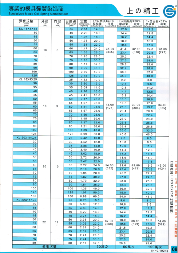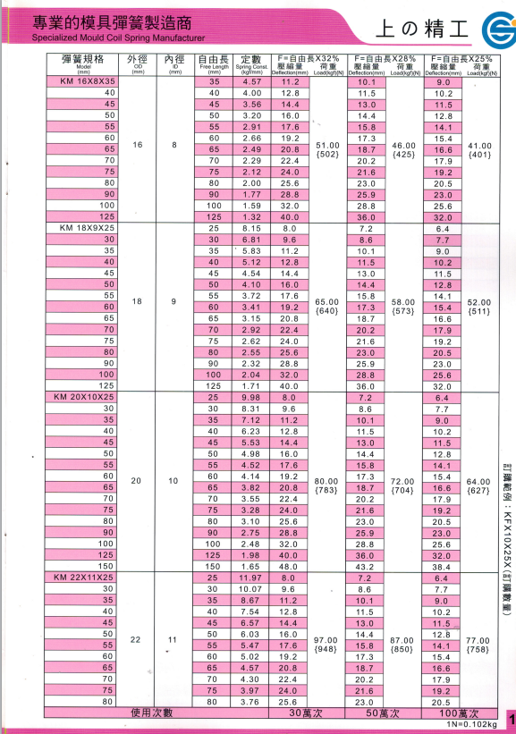 上精工模具彈簧規格書(產品大全)